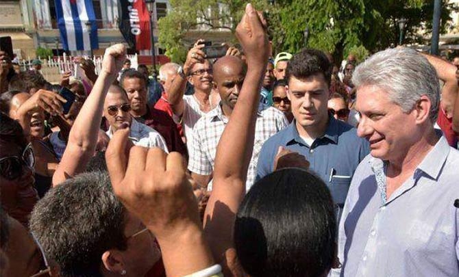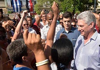 Díaz-Canel, irrumpió muy poco tiempo después de su elección en los barrios humildes de numerosas ciudades, en industrias y granjas, en escuelas y hospitales. Se le ve por todas partes, escucha y dialoga con todos; exige de continuo a ministros y funcionarios el contacto con las bases y comienza arrastrar multitudes que le aguardan en cada lugar, confiados de su accionar.