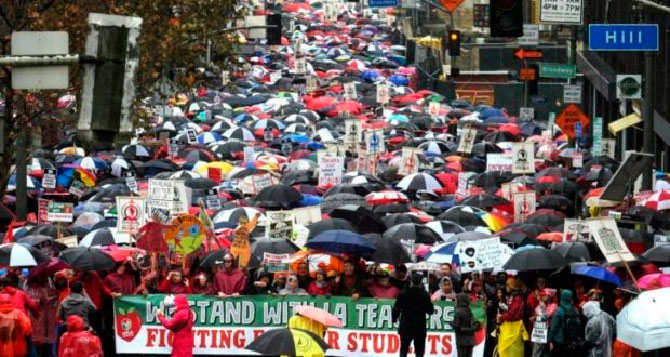 En el estado más rico de los Estados Unidos -el país más poderoso del mundo- los maestros realizan la huelga más grande de los últimos 30 años en reclamo de lo más básico para su subsistencia y el desarrollo de sus actividades docentes.