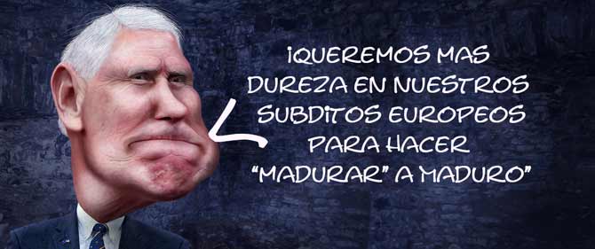 Para los Estados Unidos no caben medias tintas. O se está con ellos, o se está con "el enemigo". En esa línea, este fin de semana, el vicepresidente de los Estados Unidos ha exigido a la Unión Europea que de manera urgente reconozca a su títere Guaidó como el único presidente existente en Venezuela. Nada más y nada menos.