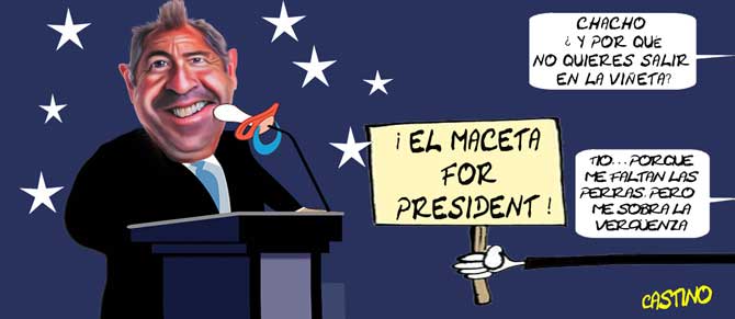 No obstante, uno ha visto uno tantas cosas a estas alturas de la vida, que ya no nos sorprendería lo más mínimo "disfrutar" de una campaña electoral con el lema "El Maceta for president". Tal posibilidad ofrecería, al menos, tantos momentos para la risa como los trabalenguas del ex presidente de España Mariano Rajoy.