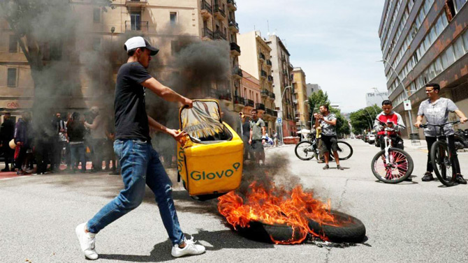 Cuando las grandes empresas argumentan que los "jineteros" no son trabajadores , no hacen otra cosa que intentar autolegitimarse para no tratarlos como tales, privándolos de esa forma de los derechos básicos conquistados por la lucha de la clase trabajadora . Estas brutales condiciones de precariedad, estan empujando a los "jineteros" a empezar a responder a nivel internacional con huelgas y movilizaciones, logrando en algunos casos el bloqueo total del servicio de las plataformas multinacionales.