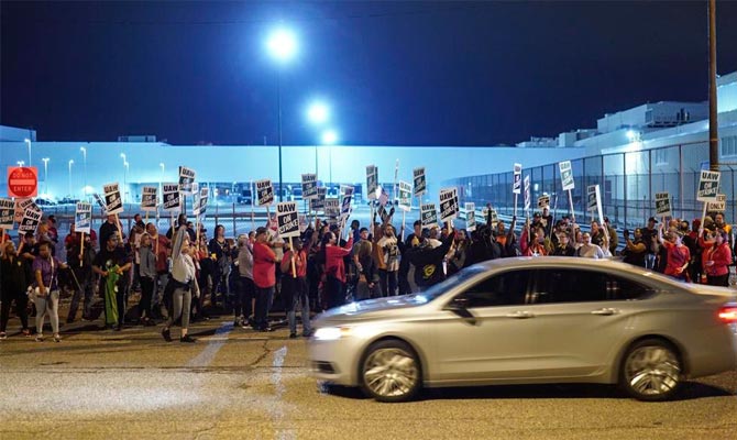 Cuarenta y seis mil trabajadores de General Motors han interrumpido la producción de  35 plantas de montaje en los estados de Michigan, Ohio, Indiana, Kentucky, Missouri, Tennessee y Nueva York. Una acción que le costará al gigante automovilístico cerca de 400 millones de dólares que se embolsaría en situación normal. Se trata de la primera huelga del sector automotriz desde 2007 en Estados Unidos,  en la que se exigen  salarios justos, atención médica asequible, seguridad laboral y participación en los beneficios de la empresa.