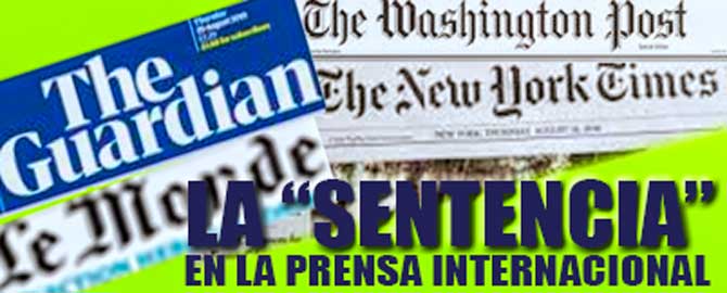La prensa y los medios internacionales recogieron en sus espacios más destacados, las sentencias dictadas por el Tribunal Supremo español en contra los independentistas catalanes. El denominador común de las opiniones de la mayoría de los rotativos, emisoras de radio y televisión recogidos por este digital ha sido el gran impacto causado por las largas penas de prisión dictadas, pese a la consideración del Supremo de que no se produjo ningún tipo de "rebelión" ni tampoco de "golpe de Estado" como pretendía la fiscalía.