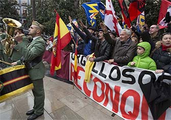 Instantánea de la celebración de la toma de Granada por los Reyes Católicos, con un grupo de extrema derecha junto a la banda militar