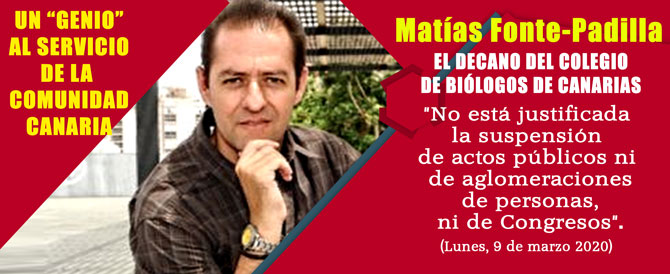 Solo cinco días antes de la declaración de la Alerta Nacional, el Decano del Colegio Oficial de Biólogos, Matías Fonte Padilla, emitía, en nombre de este colegio profesional, un comunicado (1)  denunciado en este mismo diario digital y que, en palabras del catedrático de Salud Pública de la ULPGC LLuis Serra Majem, se encontraba plagado de “falsedades e inexactitudes” (2).