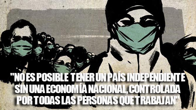 La cuestión nacional está directamente vinculada la cuestión social. El patriotismo debe manifestarse para agitar la bandera contra los traidores que venden nuestra economía al mejor postor, porque no es posible tener un país independiente sin una economía nacional, y no es posible tener una economía nacional sin que la misma esté controlada por todas las personas que trabajan y al servicio de las mismas.