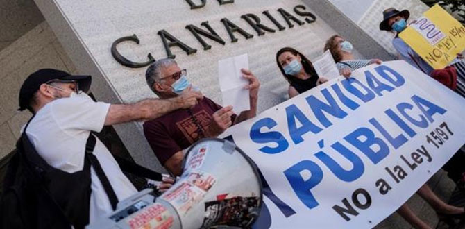 Unas 500 personas, según las cifras ofrecidas por los convocantes, participaron el pasado sábado en Las Palmas de Gran Canaria en una manifestación en defensa de la Sanidad Pública, convocada por diversos colectivos para rechazar su "desmantelamiento" y pedir la derogación de la Ley 15/97, que permite la prestación y gestión de los servicios sanitarios públicos a través de empresas privadas.