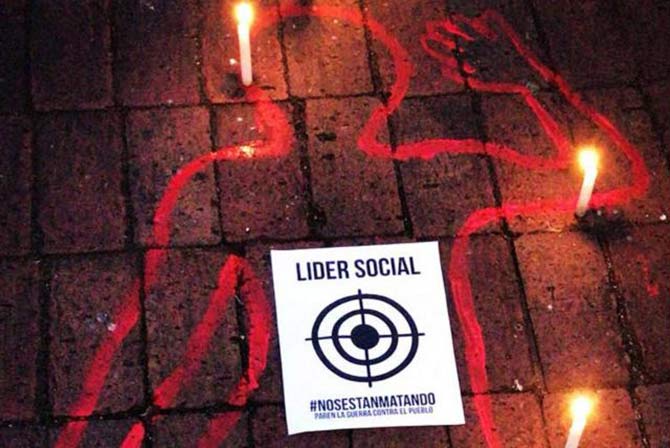 Si lugar a dudas, a tres años de cese al fuego en Colombia, los principales blancos de los crímenes políticos en el país neogranadino están siendo los líderes sindicalistas, ambientalistas, campesinos organizados, líderes agrarios, indígenas, afrodescendientes, "reclamantes" de tierras, maestros, estudiantes, artistas e intelectuales críticos que se organizan contra la depredación de pueblos y del medio ambiente.