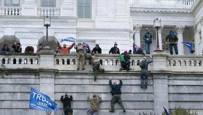 Dicho y hecho, los primeros grupos, que fueron creciendo hasta congregar a decenas de miles en los alrededores del Capitolio, forzaron la entrada al emblemático edificio rompiendo las ventanas y escalando hasta los tejados, sirviéndose incluso de las máquinas elevadoras que se usan para limpiar las ventanas.