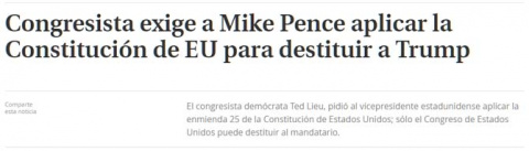 Y, ante este claro intento de golpe de Estado, nos preguntamos si la ONU, la OEA o la UE van a recomendar la intervención de fuerzas exteriores para “devolver la democracia” a Estados Unidos o van a apoyar a los golpistas, como han hecho en otros países del Continente.