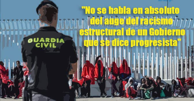 En enero de 2020 España estrenada el primer gobierno de coalición de su historia tras el acuerdo de gobierno del PSOE y Unidas Podemos. En materia migratoria el PSOE y Unidas Podemos acordaron la reducción de las deportaciones, la paralización inmediata de las devoluciones en caliente, un fondo estatal destinado a políticas de integración y la revisión de la ley de asilo. Sin embargo, desde el primer momento el PSOE incumplió dicho acuerdo en su totalidad: se mantuvieron las devoluciones en caliente (que comenzaron a tener aval y respaldo europeo), se deportaron refugiados malienses a Mauritania desde el mismo mes de enero (algo que el Servicio Jesuita a Migrantes y la Comisión Española de Ayuda al Refugiado -ACNUR- denunciaron) y no se aumentó los presupuestos en políticas de integración, pero sí el de las políticas de reclusión en CIEs y de deportaciones. Curiosamente el socio de gobierno, Unidas Podemos, no vio ni un poquito de racismo en todo esto.