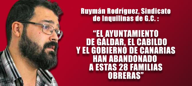 Ruymán Rodríguez, miembro del Sindicato de Inquilinas de Gran Canaria, explica para los lectores de Canarias-semanal el sangrante caso de las 28 familias de la comunidad La Marisma, del municipio grancanario de Gáldar. 70 personas, entre ellas 30 menores, que CaixaBank pretende desahuciar y a que, pese a los continuados llamamientos de este sindicato y de las propias familias, "han sido totalmente abandonadas por el ayuntamiento, el Cabildo y el Gobierno de Canarias" (...).