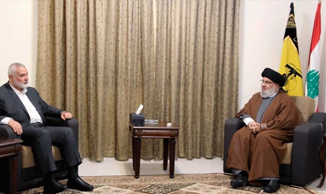 Así quedó patente este martes en la reunión sostenida entre, Ismail Haniya, jefe de la dirección política del Movimiento de Resistencia Islámica de Palestina (HAMAS), y Seyed Hasan Nasralá, secretario general del Movimiento de Resistencia Islámica de El Líbano (Hezbolá), en la que han puesto el acento en el fortalecimiento de las relaciones entre ambos movimientos, como Eje de la Resistencia palestina.