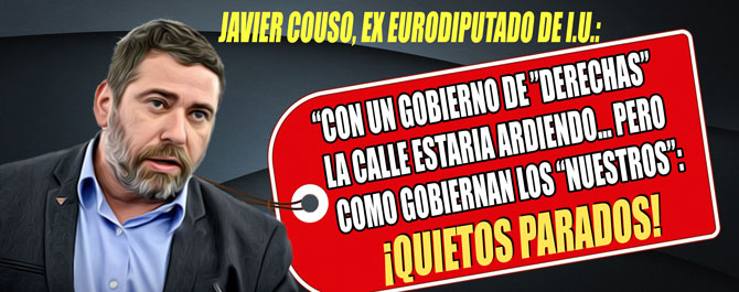 El conocido ex eurodiputado por IU, Javier Couso, manifestó a través de su cuenta de Twitter en la tarde-noche de este miércoles, su amargura por haber facilitado con su apoyo la formación de la actual Coalición gobernante, que él apostilla como "friendly-progre-liberal", agregando que "con las cifras económicas actuales y un gobierno de "derecha", la calle estaría hoy ardiendo… Pero como gobiernan los "nuestros": ¡Quietos parados!"