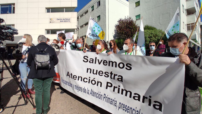 En las islas, la concentración, convocada por la Asociación para la Defensa de la Sanidad Pública de Canarias (ADSPC), se desarrollaba un día después, ante el Centro  de San Benito, del municipio tinerfeño de La Laguna.