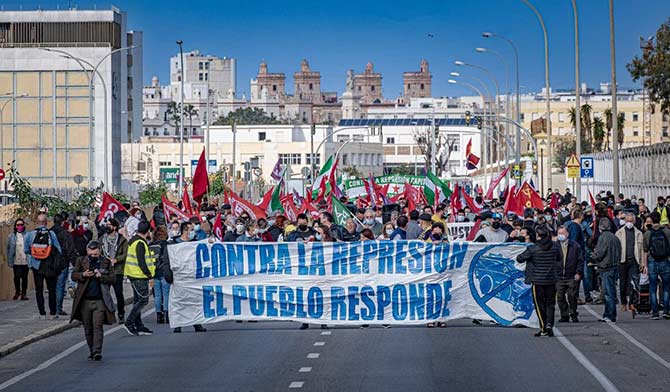 Nación Andaluza denuncia que "la oligarquía y sus instituciones están intentando sacar a las trabajadoras de las calles, evitar disturbios, protestas… mediante la represión, la intimidación, el miedo, la violencia policial y el acoso judicial".
