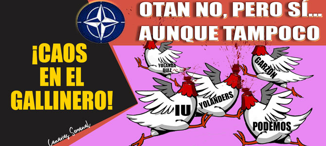 Si no fueran tan graves las implicaciones de su compromiso vergonzante con la OTAN, el cúmulo de declaraciones y contradeclaraciones de "Izquierda Unida", "Unidas Podemos" y el PCE, a propósito de la próxima cumbre que esta Coalición bélica celebrará en Madrid, podrían considerarse dignas de una desternillante película de humor.