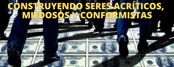 El actual sistema dominante o establishment de las sociedades occidentales utilizaría pues la dictadura invisible del consumismo compulsivo de bienes materiales para anular los ideales del individuo primigenio y transformarlo en un ser acrítico, miedoso y conformista que pasará a engrosar ineludiblemente las filas de una sociedad homogénea, uniforme y fácilmente manipulable mediante las técnicas de manipulación de masas. Así, el sociólogo y filósofo alemán Herbert Marcuse, en su libro “El hombre Unidimensional (1.964), explica que “la función básica de los medios es desarrollar pseudonecesidades de bienes y servicios fabricados por las corporaciones gigantes, atando a los individuos al carro del consumo y la pasividad política”, sistemas políticos que serán caldo de cultivo del virus patógeno conocido como “autos-kratos” o autocracia. Sin embargo, gracias a la interactividad que proporcionan las redes sociales de Internet (el llamado Quinto Poder que enlaza y ayuda a la formación de las identidades modernas), se estaría rompiendo el endémico aislamiento y pasividad del individuo sumiso y acrítico de las sociedades consumistas occidentales (Hombre unidimensional) y estaría ya surgiendo un nuevo individuo.