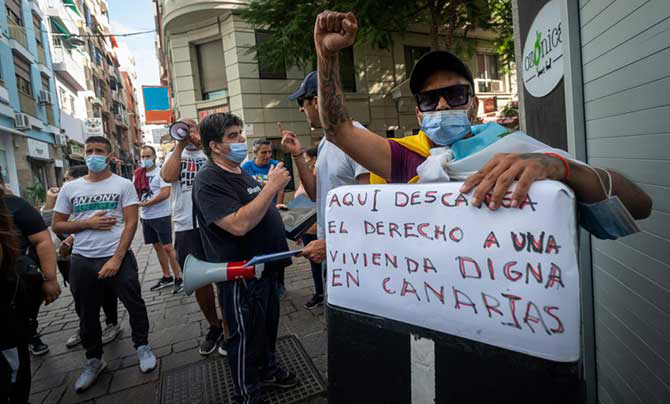 "No nos vale - dicen - el Plan de Vivienda de Canarias 2020-2025 que prevé construir 6.000 viviendas para no se sabe cuándo, y seguir así fomentando el pelotazo, favoreciendo a amigos o generando mayor impacto ambiental y mayor superpoblación, cuando tenemos 150.000 viviendas vacías ya construidas en Canarias".