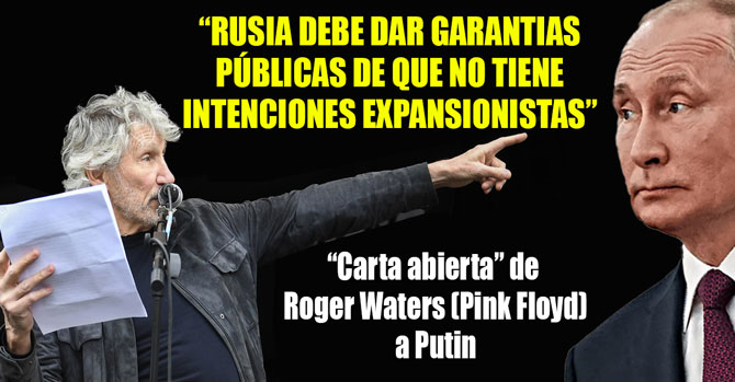Uno de los cofundadores del grupo musical Pink Floyd, Roger Waters, dirigió una contundente "carta abierta" al presidente ruso Vladimir Putin, en la que  le  exige garantías de que Rusia no tiene intenciones de expandirse  más allá de  del Donbass y de Crimea,  así como que en el futuro  no va a "invadir  ningun otro territorio ".