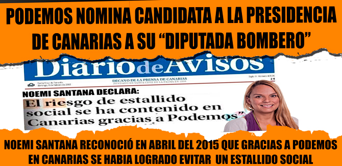 la propia Noemi Santana admitía, en una fecha tan temprana como abril de 2015, en unas declaraciones efectuadas al "Diario de Avisos" que Podemos había servido en Canarias, realmente, "para contener la explosión social".