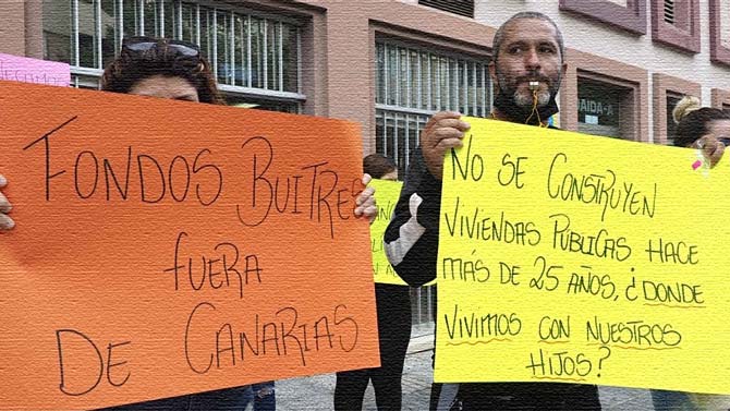 El panorama al que estamos llegando es aterrador. En unos pocos años, no sólo se han reducido las viviendas de alquiler para estancias largas (donde vive la clase obrera), reconvirtiéndose en las famosas viviendas vacacionales, sino también aquellas que tenían un precio de alquiler razonable en relación a los salarios. Es decir, hay menos casas para vivir y las que quedan están mucho más caras (no vaya a ser que los caseros no lleguen a fin de mes…) mientras el salario real –por  mucho que el gobierno “progresista” presuma de aumentos salariales– no para de caer y cada vez hay más personas con empleo que son pobres, además de que en Canarias, siendo poco más de 2 millones de habitantes, tenemos a unas 630.000 personas pobres según el último informe FOESSA. Y ya no hablemos de las condiciones que te piden para entrar en una vivienda de alquiler (empleo fijo, nómina, dos o hasta tres mensualidades para entrar a vivir, que no tengas animales, etc.) y de la falta de vivienda pública y social. Lo peor es que, al mismo tiempo, hay miles de casas vacías (en muchos casos sin terminar de construir) en manos de la banca o de fondos buitre. En Canarias son unas 150.000.