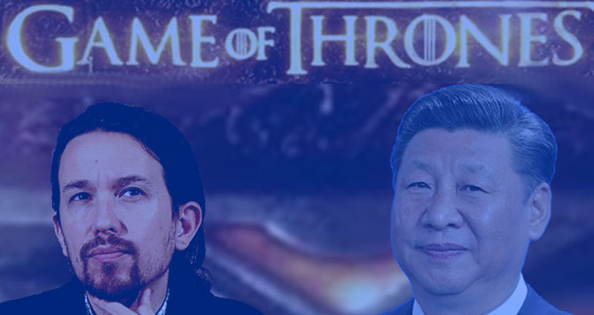 Miren ustedes por dónde, el presidente chino, Xi Jinping comparte similares aficiones televisivas con el secre de Podemos, Pablo Iglesias Turrión. En efecto, hace unos dias el primer mandatario chino no ocultó su afición por la serie televisiva 'Juego de tronos'. Aunque advirtió que el brutal mundo ficticio que envuelve la atmófera de los "Siete Reinos de Westeros", no debería convertirse en un arquetipo para las relaciones internacionales en el mundo real funcionaran de igual forma..