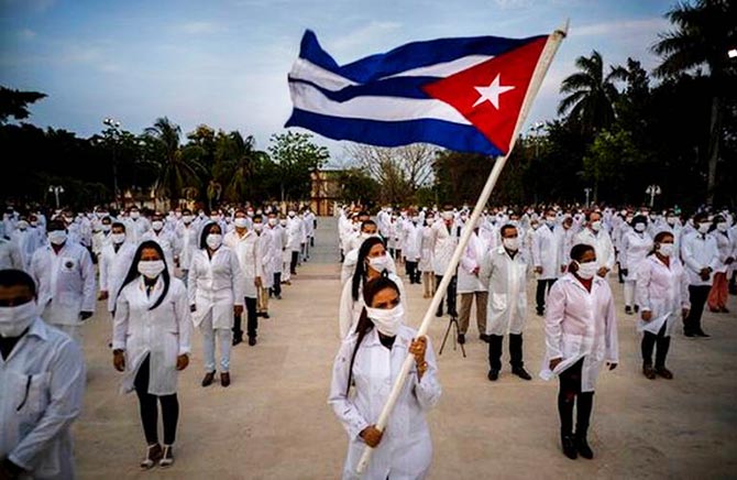 Pero si hay un mensaje alineado al cien por cien con la estrategia de la Casa Blanca es el que trata de destruir la imagen de la cooperación médica cubana en el mundo. El envío ya de 21 brigadas y 1200 profesionales que apoyan la lucha contra la pandemia ha recibido todo tipo de elogios desde Naciones Unidas (17) y gobiernos de todo signo político (18).
