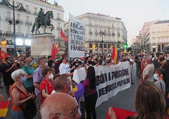 "Y nos encontramos -denuncian- en la Plaza de Oriente, con el Palacio Real a la espalda y cara a cara con el Estado policial. Una dotación policial desmesurada y con las furgonetas de antidisturbios mandados por el gobierno “progresista, que pretendió impedir la manifestación en su comienzo en la plaza de Ópera".