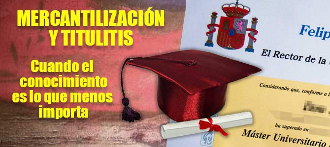 Hoy, además, con la situación de deterioro en que se halla la Universidad, donde se da más valor a la cantidad de publicaciones que a la calidad de las mismas, donde muchos estudiantes brillantes sufren a profesores mediocres -los buenos cada vez son más excepción-, una institución que se ha convertido en una mera empresa expendedora de títulos previo pago, tener un título académico no es garantía completa de competencia y sabiduría. No hay más que escuchar a ciertos personajes de nuestro entorno político y académico para comprobarlo. Pero este es un tema que merece un desarrollo más amplio.