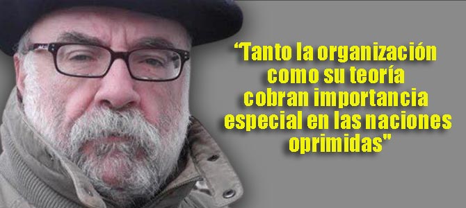 Pues bien, tanto la necesidad de la organización como de su teoría cobran importancia especial en las naciones oprimidas por una simple razón: la burguesía nacionalmente opresora cree que el o los pueblos que ocupa son propiedad privada suya, parte de sus fuerzas productivas, sujetos explotables carentes de identidad cualitativa diferenciada e integrados en su Estado-nación dominante. Dado que la teoría del partido es parte sustancial e imprescindible de la teoría de la destrucción del poder del Estado opresor y de la construcción del socialismo, por ello y a la fuerza, en las naciones oprimidas esta teoría adquiere la forma de lucha de liberación nacional de clase por la independencia socialista, la única forma histórica posible de derrotar al capital en esos marcos sociohistóricos.
