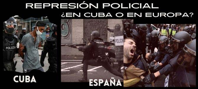 “Brutal represión” en la Isla, nos dice la prensa europea (2). Pero si visionamos con detalle las decenas de videos publicados sobre aquellos incidentes (3) (4) (5), y desconectamos el sonido de la narración, ¿qué vemos en realidad? Una policía cubana poco entrenada que da una respuesta tibia ante las agresiones (6), y cuyas expresiones más violentas son casi infantiles al lado de la actuación de muchas policías del mundo. Para empezar, las de la propia Europa (7).