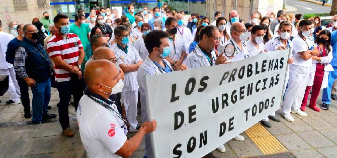 “Hemos llegado a nuestro límite, no queremos ser cómplices de esta situación”, rezaba la convocatoria del acto de protesta. Los profesionales insisten en que el servicio de urgencias es el más afectado por el colapso, pero que el problema trasciende de esta área y que el tapón se produce por la falta de camas de hospitalización a las que poder trasladar a los pacientes cuando son dados de alto en urgencias.