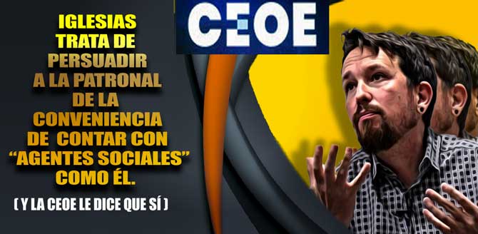 PABLO IGLESIAS YA IMPARTE LECCIONES SOBRE "LIDERAZGO" EN LA SEDE DE LA PATRONAL