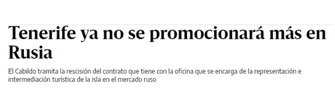 La pasada semana, el cabildo de Tenerife anunciaba su decisión de dejar de promocionarse en Rusia en respuesta a la intervención militar de este país en Ucrania (...).