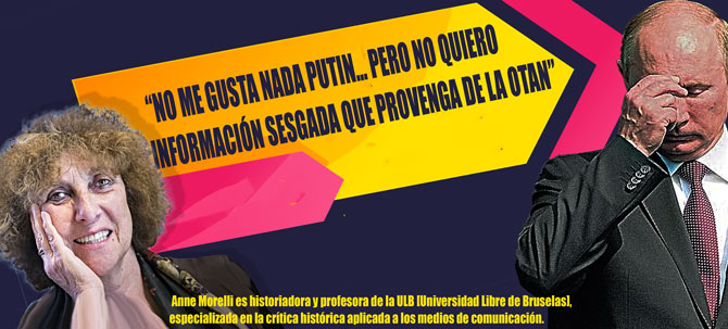 Anne Morelli es una historiadora y profesora de la ULB [Universidad Libre de Bruselas], especializada en la crítica histórica aplicada a los medios de comunicación. Ha publicado la obra de referencia "Principes élémentaires de propagande de guerre" [Principios elementales de la propaganda de guerra].