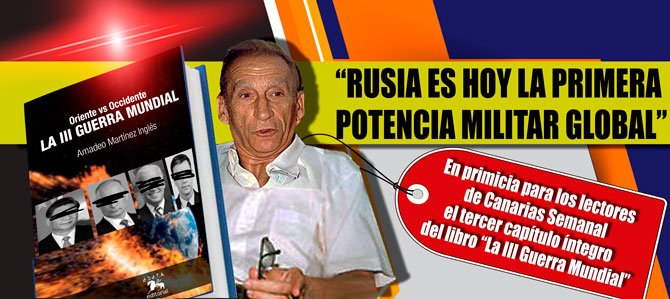 Rusia se ha convertido -expone el coronel Amadeo Martínez Inglés en este tercer capítulo de su nuevo libro "Oriente Vs Occidente: La Tercera Guerra mundial"- en la primera potencia militar global. Las espectaculares armas de última generación con las que cuentan las Fuerzas Armadas de la Federación rusa y que la colocan, sin ninguna duda, en ese puesto de privilegio en cuanto a tecnología y poder de destrucción de su aparato castrense (...).