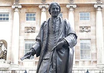 La estatua en bronce dedicada al miembro del parlamento británico sir Thomas Guy