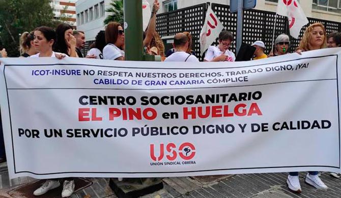 Es el caso del Centro Sociosanitario El Pino, en Gran Canaria, la UTE ICOT-INSURE S.L., es la empresa adjudicataria de la gestión de este centro público. Su personal va a la huelga indefinida en contra de las externalizaciones, por impago de la actualización salarial, retraso en el pago de salarios, mal estado de las herramientas e instalaciones de trabajo, excesiva carga de trabajo, turnos y jornadas abusivas que incumplen los descansos diarios y semanales obligatorios con claro riesgo psicosocial y de accidentes de trabajo. La huelga comenzará el 5 de diciembre a partir de las 23:59 horas y habrá manifestación el 6 de diciembre a las 11:00 horas que partirá desde el Paseo Tomas Morales hasta la sede del Cabildo.