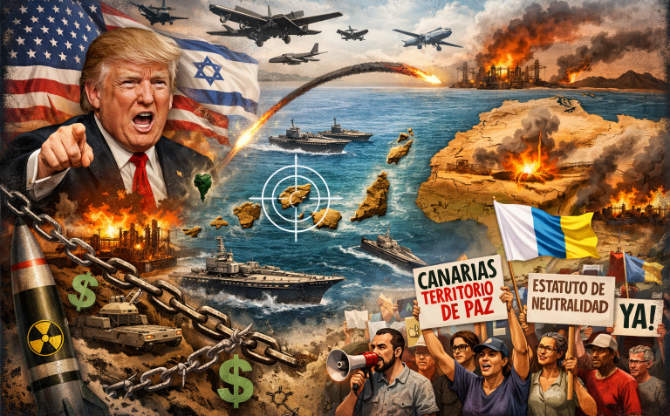 La pretensión de Trump de disponer las bases españolas "porque quiere", para una guerra de agresión contra Irán diseñada desde Tel Aviv y Washington, sitúa al Archipiélago Canario en la primera línea de fuego de una conflagración global, que involucraría al Sahel y al Golfo de Guinea, que no nos pertenece, arrastrando a un pueblo, el Canario, que ya expresó en 1986, en referéndum, su rechazo mayoritario a la pertenencia a la Alianza Atlántica. Frente a este imperialismo extractivo y militarista, la respuesta no puede ser la sumisión de un Estado que se dice soberano en la retórica pero que ha actuado históricamente como vasallo, ni la resignación de una ciudadanía atrapada entre dos fuegos. Se hace urgente y vital la exigencia de un Estatuto de Neutralidad para Canarias, una reivindicación que ha cobrado fuerza con el aval y el respaldo de decenas de colectivos sociales, políticos y sindicales en Canarias. Esta herramienta jurídica, amparada por el derecho internacional y con precedentes en territorios como las islas Åland, constituye la única vía para romper las cadenas de la Doctrina Monroe en el Atlántico y blindar a nuestro pueblo frente a las ambiciones de quienes, desde Washington y la entidad sionista, que cuentan con un aliado en la satrapía marroquí, ven en nuestras islas —y en las bases peninsulares— poco más que una gasolinera y una pista de aterrizaje para su maquinaria de guerra, sino como plataforma militar para guerras de agresión y ocupación, sobre todo en el continente africano. La neutralidad no es una opción de conveniencia ni una declaración ingenua en un mundo convulso: es nuestra única garantía de supervivencia frente a la barbarie que hoy amenaza con incendiar Venezuela, Cuba, Nigeria, Irán y el Sahel, y la afirmación más rotunda de que Canarias quiere ser territorio de PAZ, desnuclearizado, con un Estatuto de Neutralidad para ser puente de cooperación equitativa y de relaciones pacíficas entre pueblos, no base de agresión contra ellos.