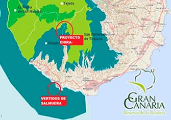 Mapa realizado por la plataforma 'Salvar Chira-Soria, barranco de Arguinguín' que recoge los espacios naturales protegidos de la Red Natura 2.000 donde irá ubicado el proyecto Chira-Soria ACTIVISTAS SE ENFRENTAN A LA POLICÍA PARA TRATAR DE DETENER LAS OBRAS DE CHIRA-SORIA