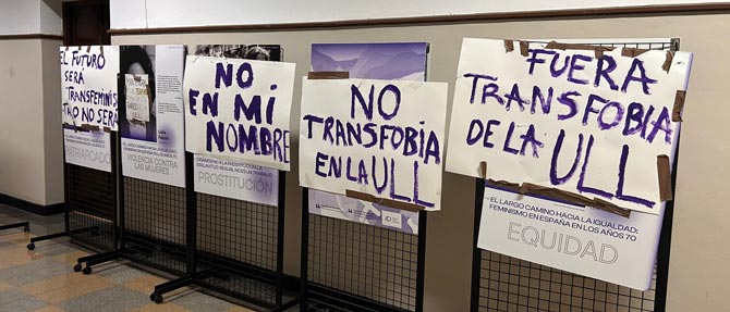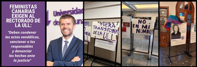 Feministas Canarias exige que el rectorado de la ULL “condene públicamente los actos vandálicos, investigue y sancione a los responsables y denuncie los hechos ante la justicia por considerarlos constitutivos de delitos de odio y atentados contra el patrimonio universitario”.