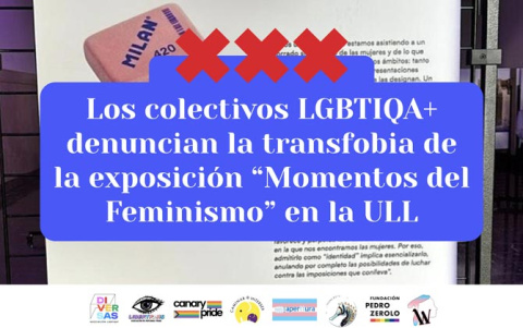 En el lado opuesto de este conflicto, las asociaciones LGBTIQA+ de Tenerife han expresado públicamente su rechazo a la exposición “Momentos del Feminismo” organizada en la Universidad de La Laguna, calificándola de "transfóbica y contraria a los valores de inclusión y respeto que deberían regir en una institución pública".
