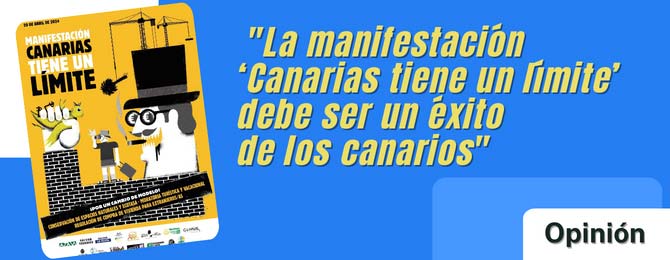 Parece que al Ejecutivo de Fernando Clavijo conformado por Coalición Canaria y el Partido Popular no le interesa defender a Canarias. No le preocupa el desastre habitacional ni medioambiental que se está produciendo. Parece que sólo sigue los dictados de los altos empresarios. Nada nuevo bajo el sol. Por todo ello, las manifestaciones del 20A, bajo la consigna "Canarias tiene un límite" tienen que ser y van a ser, un éxito de los canarios.