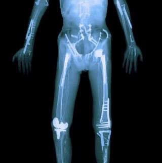 En la foto adjunta se muestra una imagen obtenida por rayos X del piloto Travis Pastrana. En ella se pueden ver los