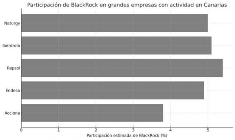 Aunque no disponemos de evidencias públicas de adquisiciones directas de BlackRock en el territorio canario, su influencia se manifiesta de forma indirecta a través de su participación en empresas nacionales que operan en el Archipiélago.