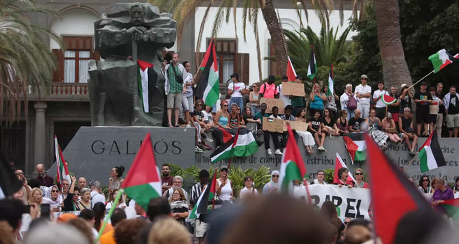 El sábado, miles de personas tomaron las calles de Las Palmas de Gran Canaria para manifestar su respaldo al pueblo palestino y exigir el cese inmediato de lo que describen como una masacre. La marcha arrancó a las 11:00 desde el Parque de San Telmo y recorrió la calle León y Castillo hasta la Plaza de La Feria, donde se encuentra la sede de la Delegación del Gobierno en Canarias. Allí se leyó un manifiesto unitario a cargo de representantes de la Red Solidaria contra la Ocupación de Palestina.