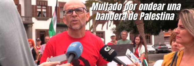Mientras el Gobierno presume de apoyar al pueblo palestino, en Canarias impone multas a los activistas que se manifiestan para expresar su solidaridad con dicho pueblo y denunciar el genocidio perpetrado por el Estado de Israel. La sanción de 1.500 euros al militante del PCPC Javier Delgado es tan solo - denuncian - " un ejemplo de una persecución cada vez más sistemática" (...).