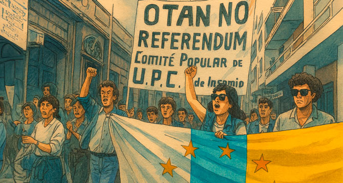Sin embargo, los pueblos tienen memoria. Canarias dijo “No” a la OTAN en 1986, cuando el Estado español decidió incorporarse a la Alianza Atlántica. Aquel rechazo fue un acto de dignidad y conciencia política: la afirmación de que este territorio no debía ser base ni objetivo de conflictos globales. Hoy, ese mandato popular es vulnerado con métodos más sutiles. La colonización militar regresa bajo el rostro amable del desarrollo tecnológico y el empleo, construyendo un consenso artificial que asocia modernidad con sumisión.