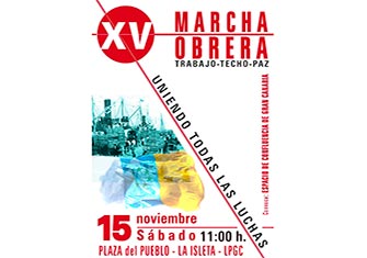 La Marcha Obrera de Gran Canaria celebra este año su decimoquinta edición con un marcado acento histórico. Convocada por el Espacio de Confluencia de Gran Canaria, esta movilización se desarrollará el sábado 15 de noviembre por las calles del barrio capitalino de La Isleta, punto neurálgico de la memoria obrera en la isla. La cita comenzará a las 11:00 en la Plaza del Pueblo y finalizará en el Paseo de Las Canteras, bajo el lema “Trabajo, Techo y Paz”.